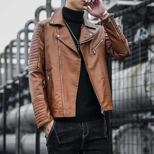 Elegant Zip Leather Jacket