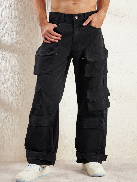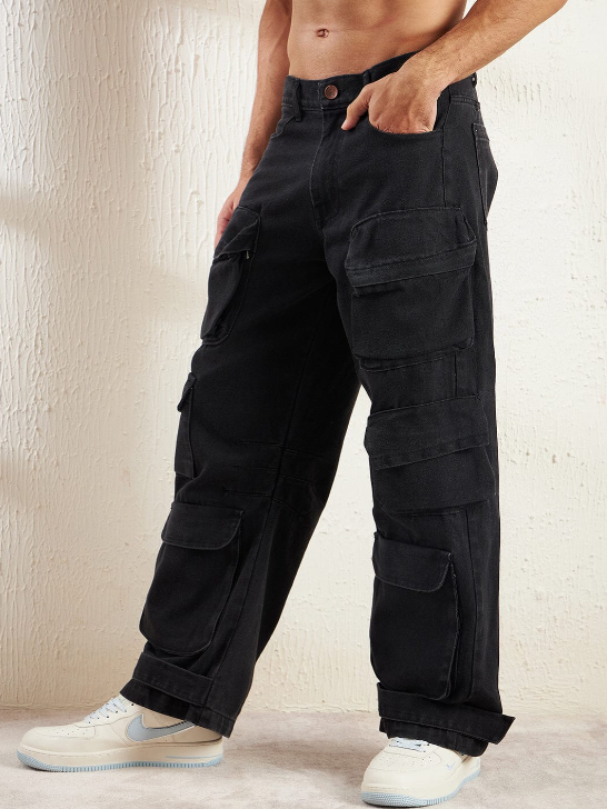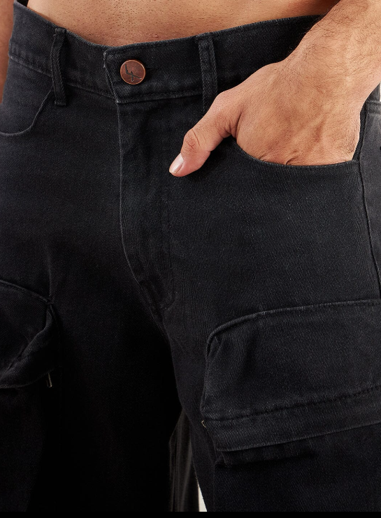 Black Super Baggy Cargo Denim