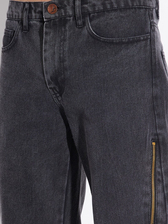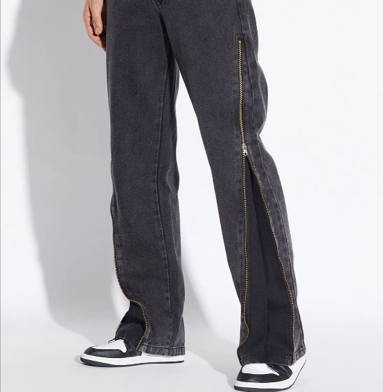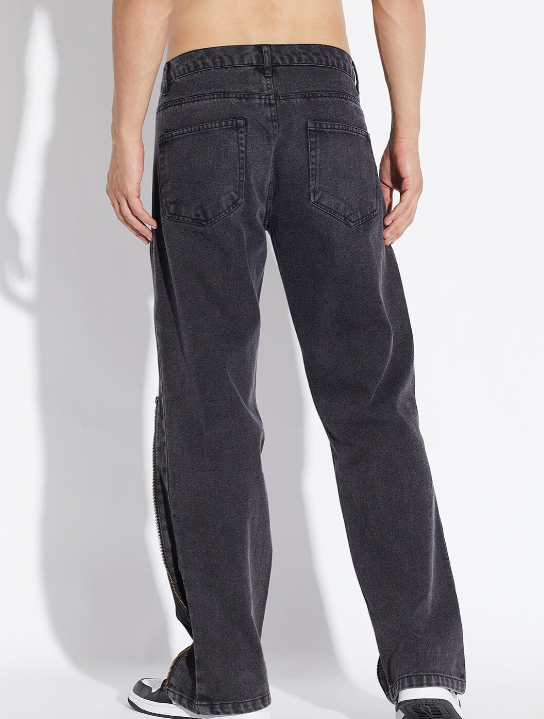 Black Zipped Adjustable Flared Denim
